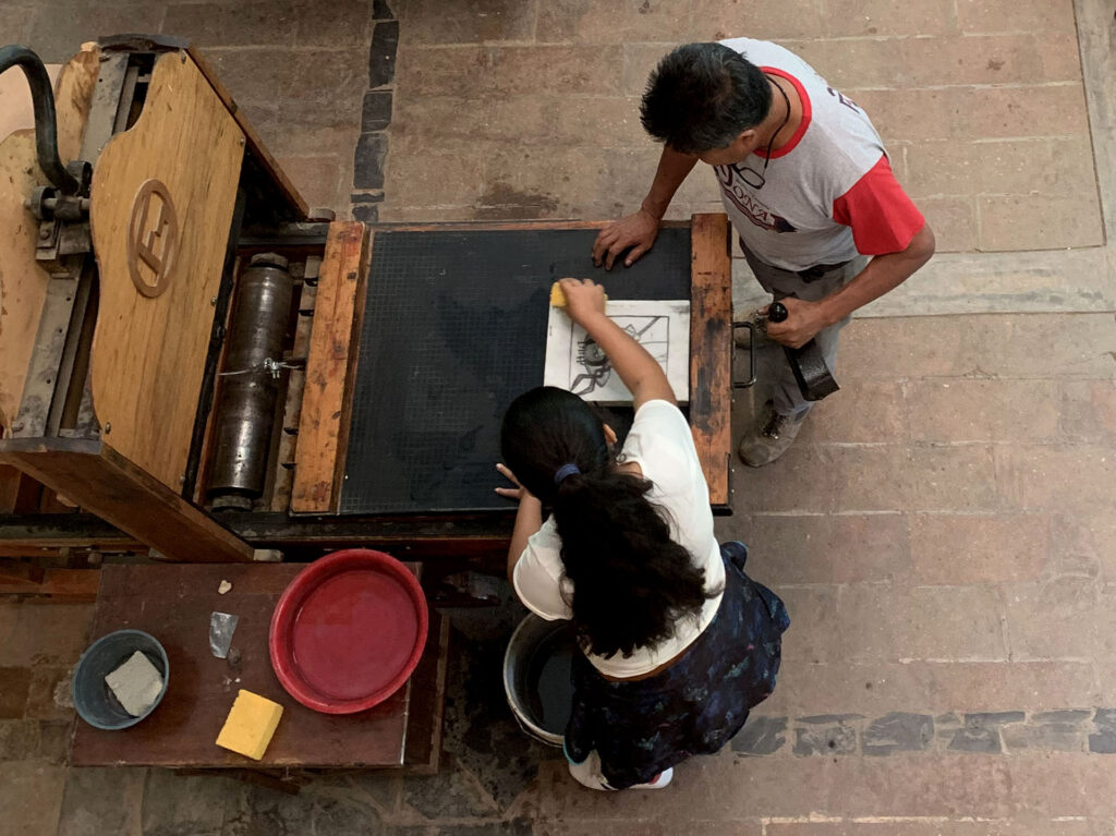 Donación de prensa litográfica para la Escuela de Artes Plásticas de la UABJO, con sede en Juchitán.